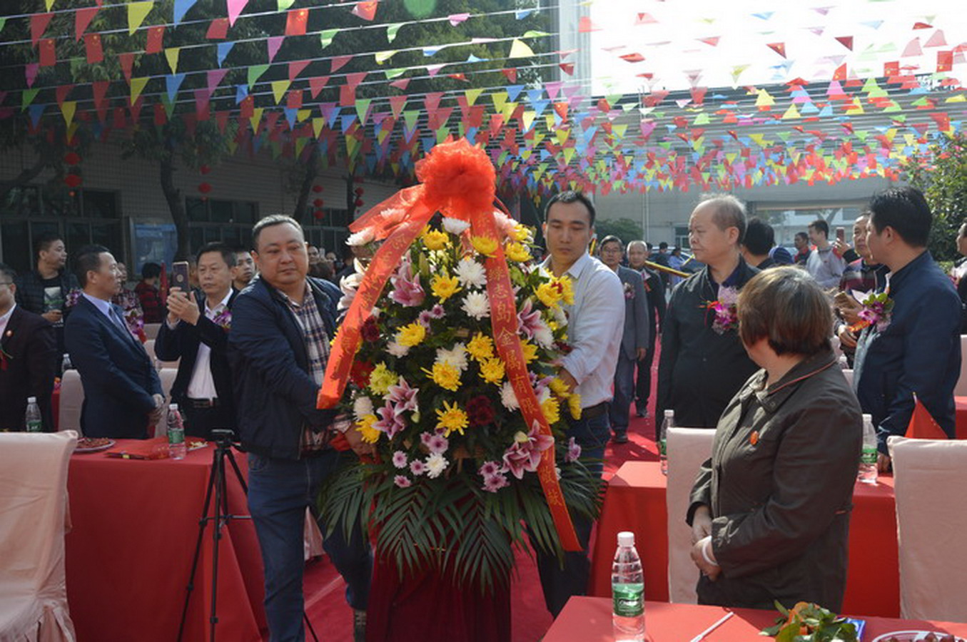 ▲綠志島總經理賴高平先生為嘉賓寫花籃語